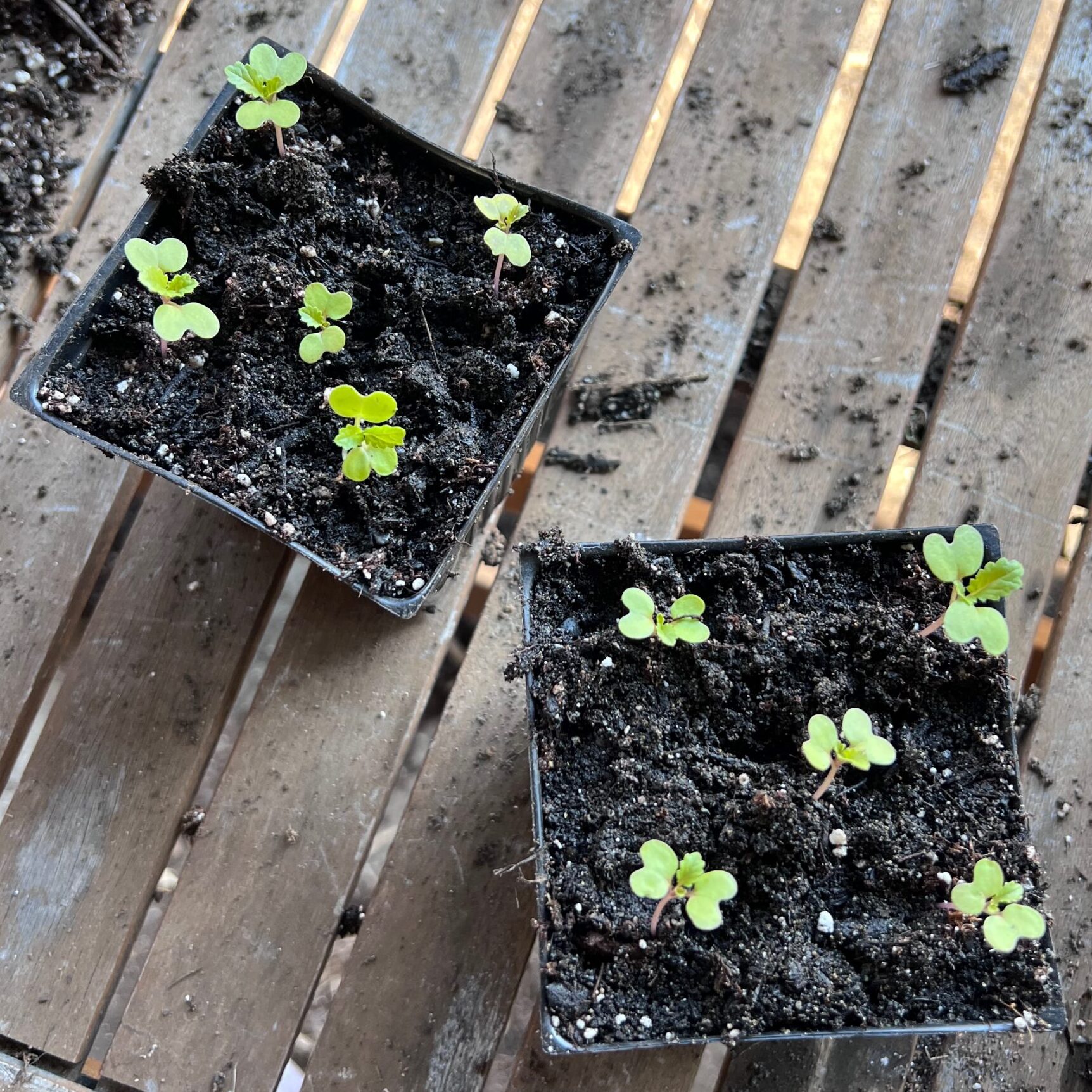 Beacon Hill Sprouts: number of pots and crop names. Each pot has 5 plants.